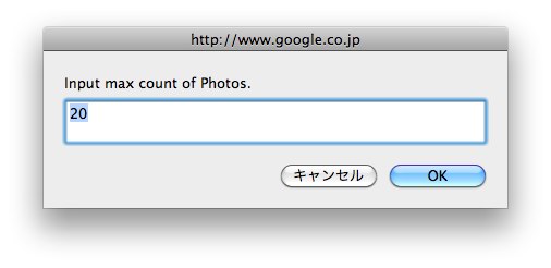 ブックマークレットを起動すると、取得する画像の最大件数を入力する画面が表示されます。