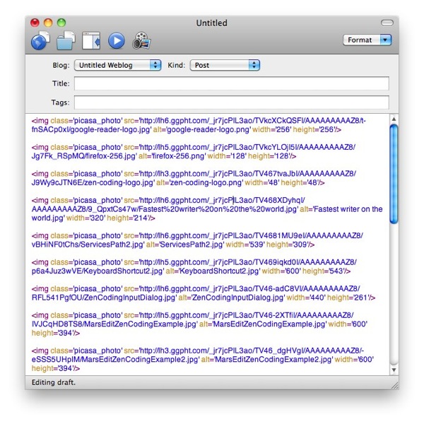 MarsEdit 版は結果が MarsEdit のエディタに挿入されます。